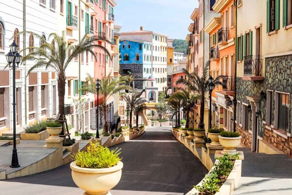 Tâm điểm của nơi đây là khu Central Village với tháp đồng hồ cao 75m, sở hữu kiến trúc mô phỏng nguyên bản tháp chuông nổi tiếng trên quảng trường San Marco, Venice, Italia, đặt giữa những khối nhà phân cấp đủ màu sắc, những ô cửa sổ thơ mộng hướng ra mặt biển lấp lánh cùng cung đường dạo ôm theo vách đá.
