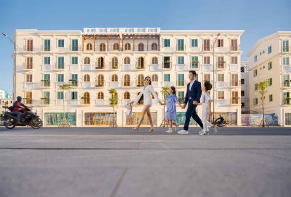 Hồn cốt và vẻ đẹp cổ kính của “thị trấn Địa Trung Hải” này được tái hiện tinh tế qua những lớp sơn giả cổ cầu kỳ. Biển số nhà làm bằng gốm, hệ thống ống thoát nước bên hiên nhà, các hoa văn trên cột điện, phào, chỉ trên cửa sổ, và cả lan can sắt dẫn lối trong nội khu, những chi tiết nhỏ được tái hiện sống động, như mang cả “linh hồn” Địa Trung Hải về bên biển Ngọc.
