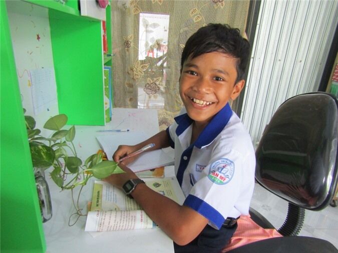 Thạch Huỳnh Vĩnh Nghi trong góc học tập của mình.