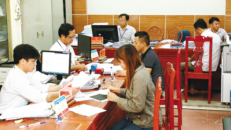 Cán bộ công chức Bộ phận Một cửa xã Nam Sơn giải quyết thủ tục hành chính cho người dân.