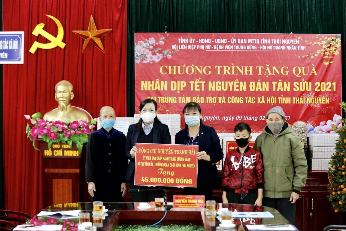Bà Nguyễn Thanh Hải, Ủy viên TƯ Đảng, Bí thư Tỉnh ủy, Trưởng đoàn ĐBQH tỉnh, thăm hỏi và tặng quà cho Trung tâm Bảo trợ và Công tác xã hội tỉnh Thái Nguyên nhân dịp Tết Tân Sửu