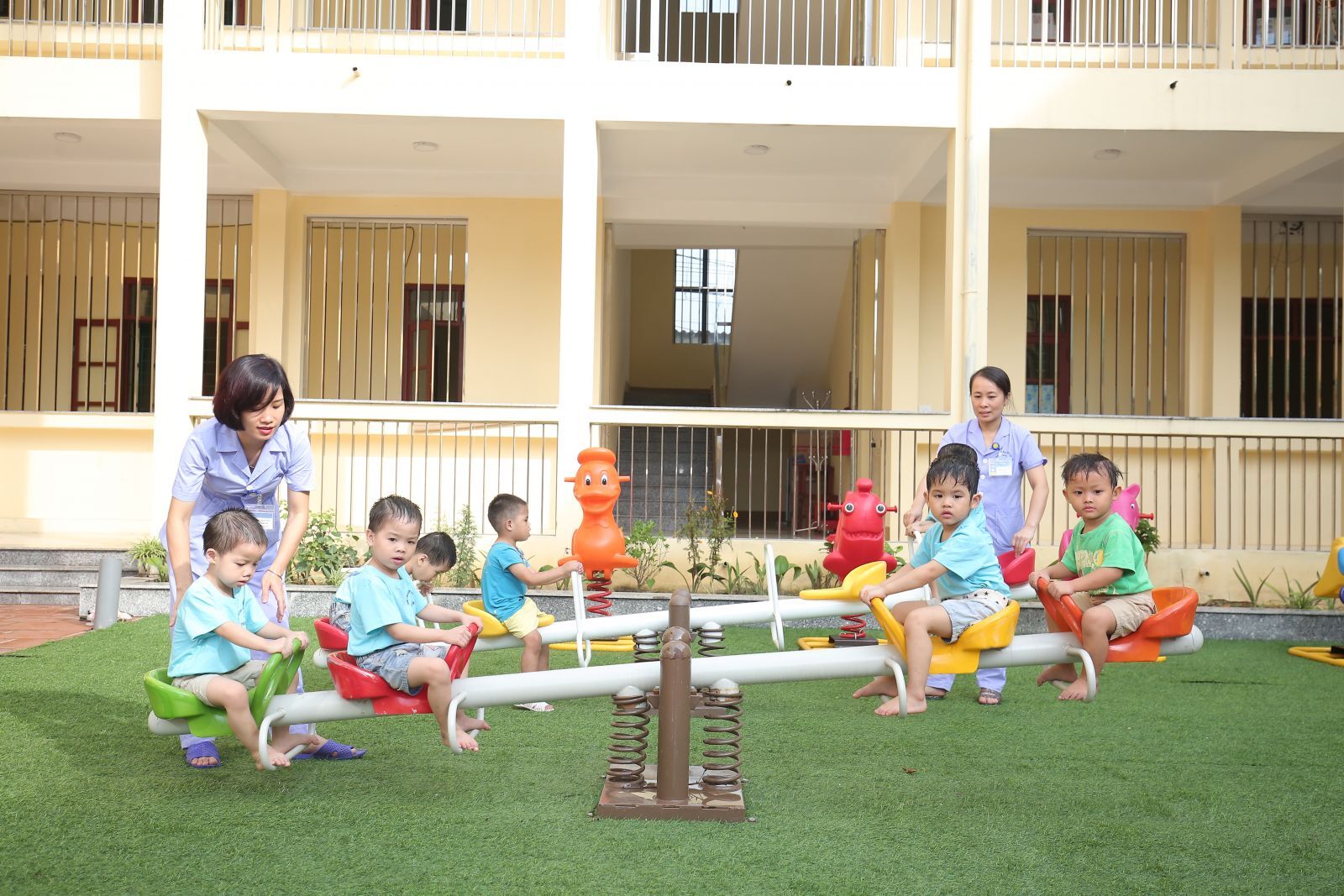 Cán bộ Trung tâm Bảo trợ và Công tác xã hội tỉnh Thái Nguyên đang chăm sóc trẻ tại Trung tâm