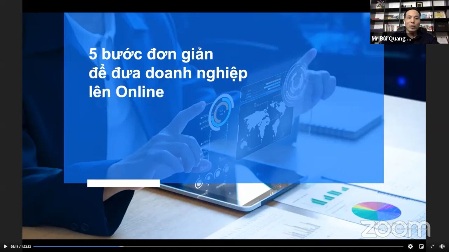 Trao đổi tại buổi đào tạo trực tuyến, chuyên gia Bùi Quang Cường chia sẻ những kiến thức về bán hàng trên môi trường số: Xu hướng phát triển và tiềm năng online của thị trường Việt Nam; 5 bước đơn giản để đưa doanh nghiệp lên online và những sai lầm thường gặp trong quá trình triển khai của doanh nghiệp. Hiện nay rất nhiều doanh nghiệp đang nhầm lẫn là chỉ quan tâm đến việc lựa chọn đúng ứng dụng nào để truyền thông là sẽ bán được hàng trên môi trường số. Tuy nhiên theo chuyên gia Bùi Quang Cường thì đây chỉ là công cụ, quan trọng nhất vẫn là bản chất của sản phẩm nhắm được đến đúng nhu cầu, đối tượng của khách hàng, từ đó mới có những chiến lược hợp lý. Bên cạnh những kiến thức chính mà doanh nghiệp có thể vận dụng thì các học viên còn được lắng nghe những chia sẻ về kinh nghiệm thực tế mà các doanh nghiệp trong nước đã sử dụng các công cụ chuyển đổi số để bán hàng đạt được hiệu quả cao.