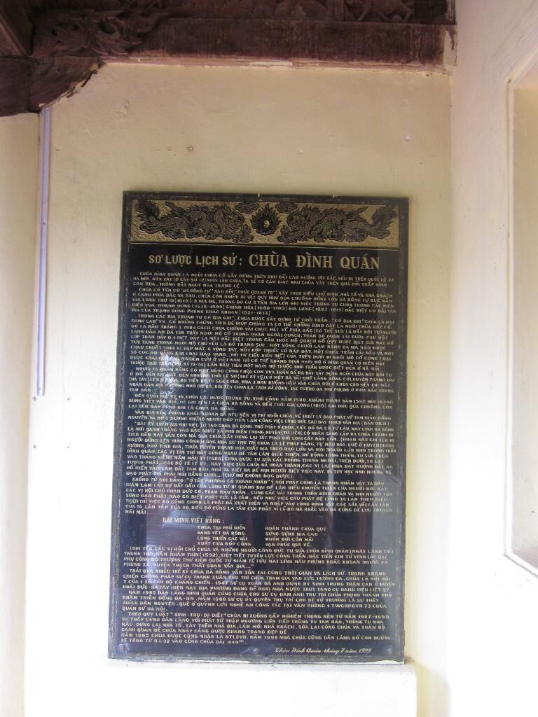 VNHN - Chùa làng Quan Đình xưa thuộc tổng Mẫn Xá, huyện Đông Ngàn, phủ Từ Sơn, trấn Kinh Bắc (nay thuộc xã Văn Môn, huyện Yên Phong, tỉnh Bắc Ninh). Chùa có niên đại khởi dựng từ lâu đời, sang thời Lê Trung Hưng được mở rộng với quy mô lớn gồm nhiều hạng mục công trình kiến trúc cùng hệ thống tượng phật đồ sộ.