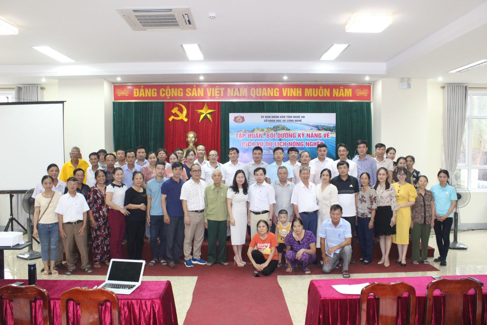 Tham dự lớp tập huấn có đại diện Lãnh đạo huyện Nam Đàn, Thị xã Cửa Lò; Các cán bộ Phòng Văn hóa, Phòng Kinh tế - Hạ tầng, Phòng Nông nghiệp của huyện Nam Đàn và Thị xã Cửa Lò; Đại diện Lãnh đạo và công chức văn hóa các xã Kim Liên, Nam Giang, Nam Nghĩa, Nghi Hải; Thành viên HTX Sen Quê Bác và thành viên liên kết với HTX Sen Quê Bác; Thành viên HTX Chanh Thiên Nhẫn; Hộ dân Làng nghề nước mắm Hải Giang 1; Thành viên Hội sản xuất và kinh doanh cá thu nướng Cửa Lò; Doanh nghiệp làm du lịch trên địa bàn huyện Nam Đàn, Thị xã Cửa Lò; Trung tâm Văn hóa Thông tin Truyền thông huyện Nam Đàn, Thị xã Cửa Lò; Một số tổ chức đang xây dựng mô hình du lịch nông nghiệp trên địa bàn tỉnh…