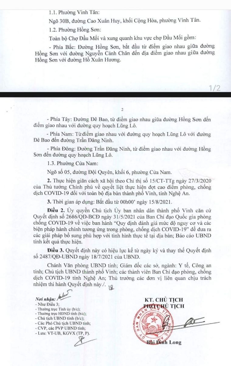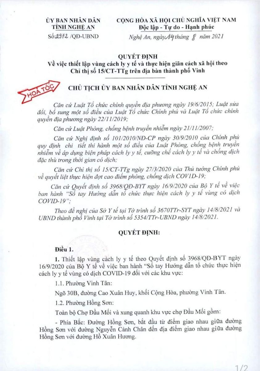 TP.Vinh quyết định phong tỏa và cách ly xã hội theo Chỉ thị 16 tại 3 khu vực: