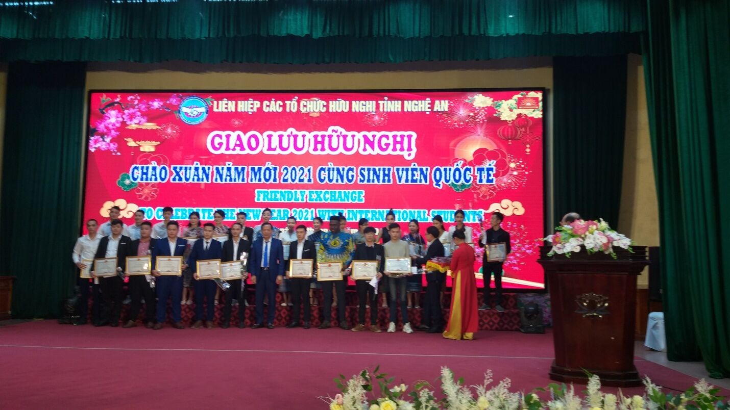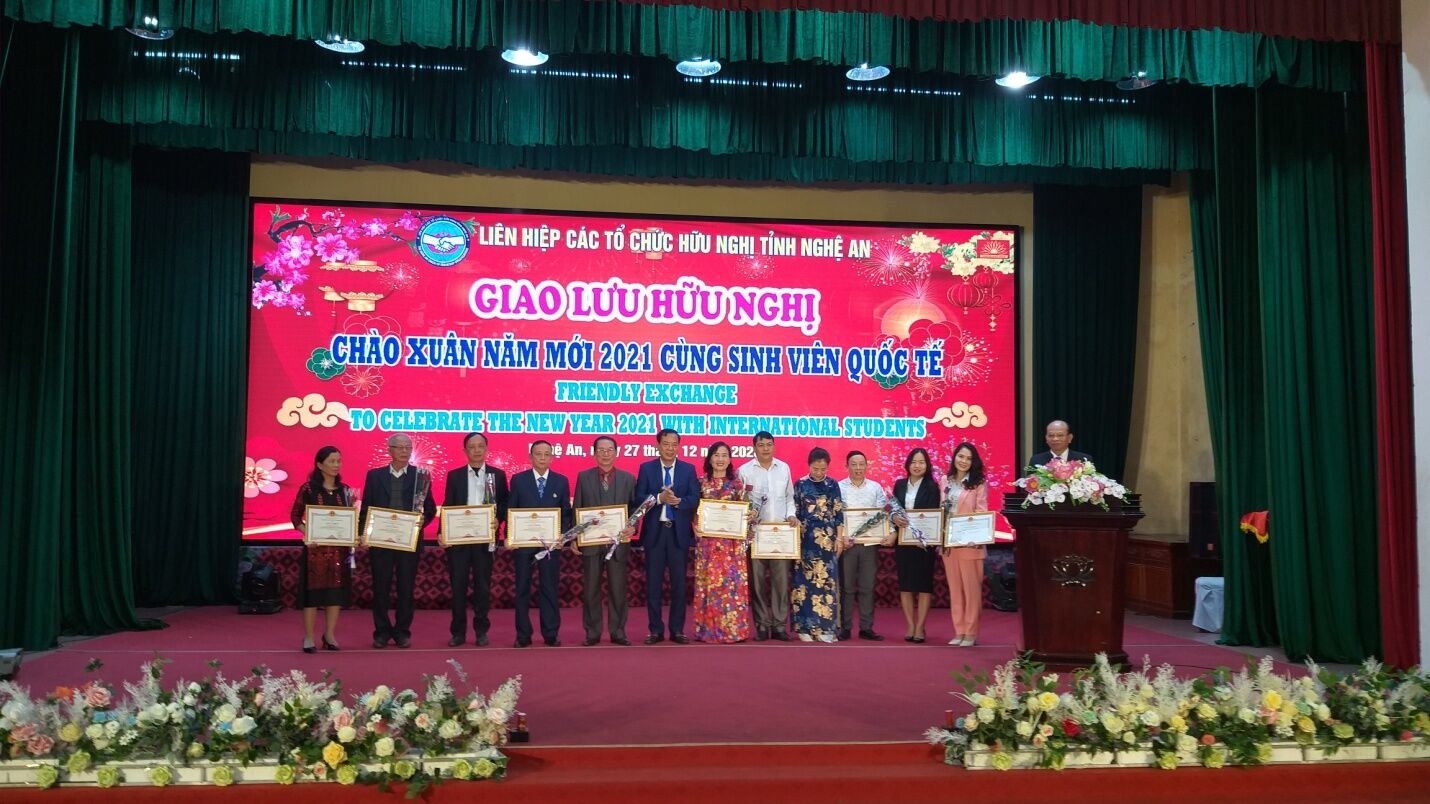 Nhân dịp này, Liên hiệp các Tổ chức hữu nghị tỉnh Nghệ An trao nhiều giấy khen cho các tập thể, gia đình, giáo viên Việt Nam và sinh viên các nước đã có thành tích xuất sắc trong hoạt động đối ngoại nhân dân./.