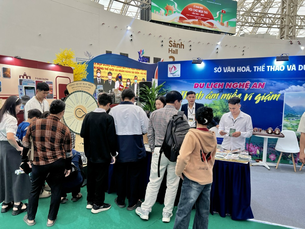 Tham gia Hội chợ Mùa Thu lần này, Sở Văn hóa, Thể thao và Du lịch tham gia 02 gian hàng tại Phân khu “ Công nghiệp văn hóa – mùa vàng thứ nhất” và Phân khu “Lễ hội ẩm thực - Thu Mỹ Vị”. Không chỉ trưng bày các ấn phẩm du lịch, hình ảnh, video clip, Nghệ An còn giới thiệu những đặc sản địa phương và sản phẩm OCOP đặc trưng, tạo nên một trải nghiệm chân thực cho du khách. Nhiều hoạt động tương tác, trình diễn dân ca ví giặm, ẩm thực đặc sắc cũng được tổ chức, giúp khách tham quan cảm nhận được vẻ đẹp thiên nhiên, con người và văn hóa Nghệ An ngay giữa lòng Hà Nội.