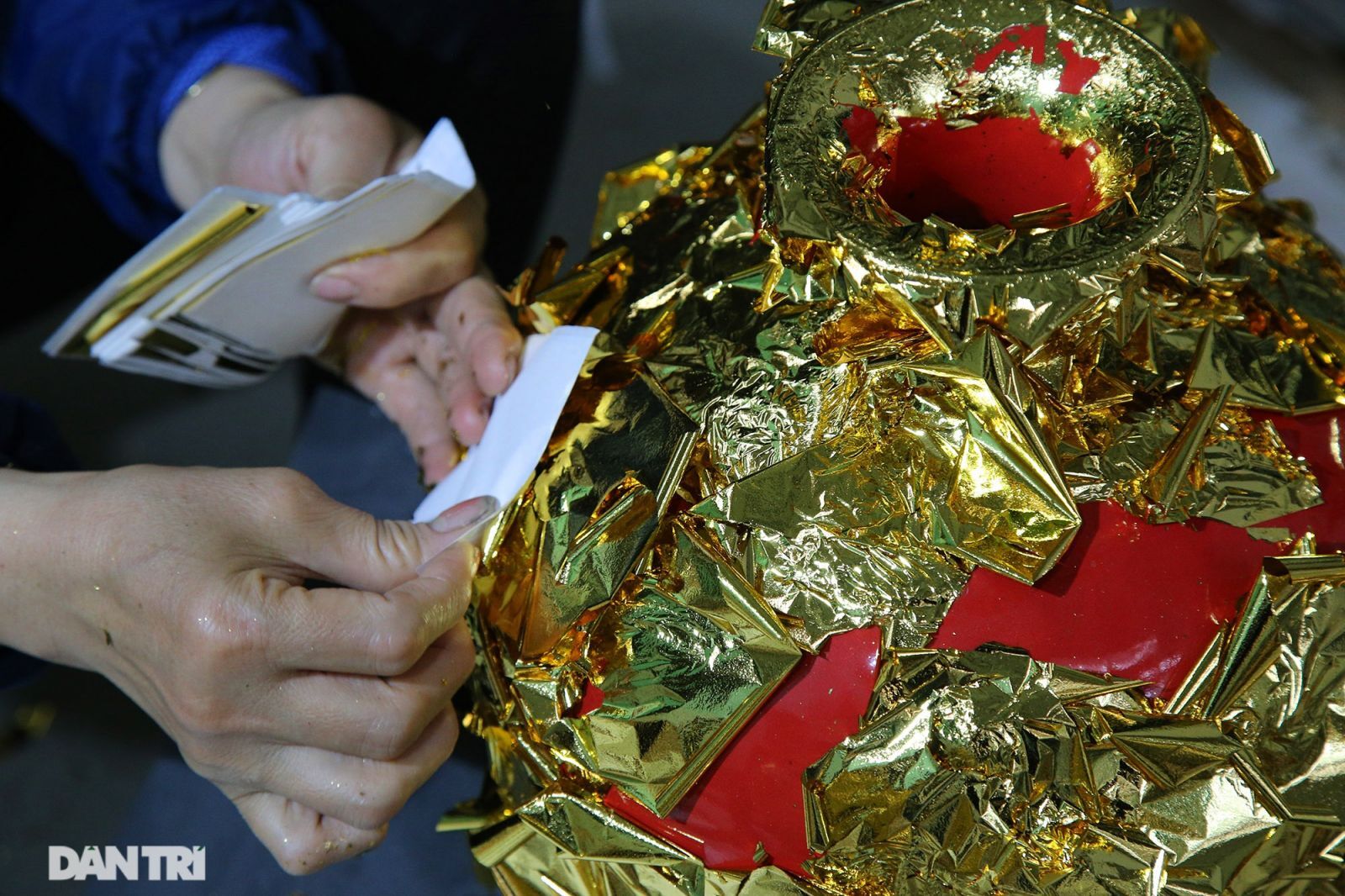 Một sản phẩm hoàn chỉnh sau khi được dát vàng bởi bàn tay người thợ Kiêu Kỵ. Ngày 9/3 vừa qua, nghề quỳ vàng bạc Kiêu Kỵ đã được Bộ Văn hóa Thể thao và Du lịch công nhận là Di sản Quốc gia.