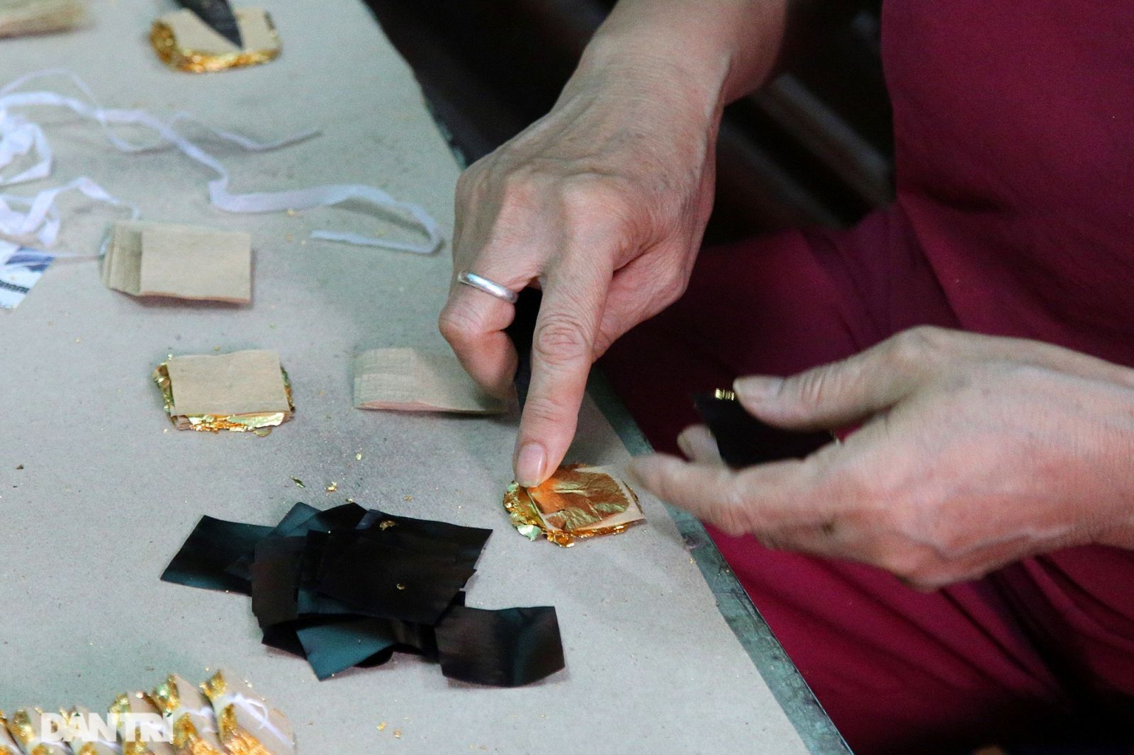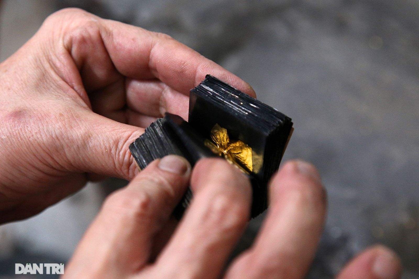 Người thợ giỏi có thể đập nửa chỉ vàng dàn mỏng thành 500 lá vàng mỗi cạnh 4cm. Muốn có một quỳ vàng, người thợ phải đập khoảng 40 phút liên tục.