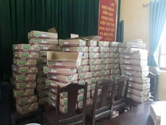 Những thùng sữa được để tại nhà trường. (Ảnh: CLXH).
