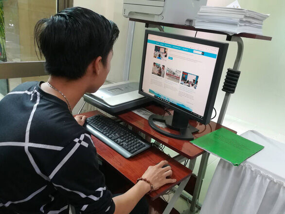 Anh Nguyễn Văn Hùng, người dân phường 12, quận 10, xem thông tin trên trang web vừa ra mắt của UBND phường 12.