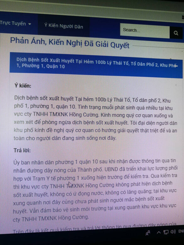 UBND phường 1, Q.10 trả lời kết quả phản ảnh của người dân trên trang tin phường.