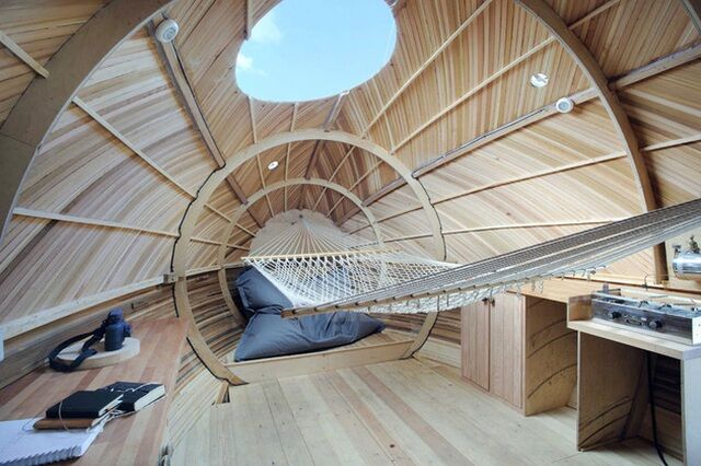 Chỗ ngủ được thiết kế khá cơ bản, chỉ với một chiếc võng dây. Ban ngày, chiếc võng được thu gọn lại, không gian mở ra như một xưởng vẽ, nơi Turner sáng tạo những tác phẩm nghệ thuật.