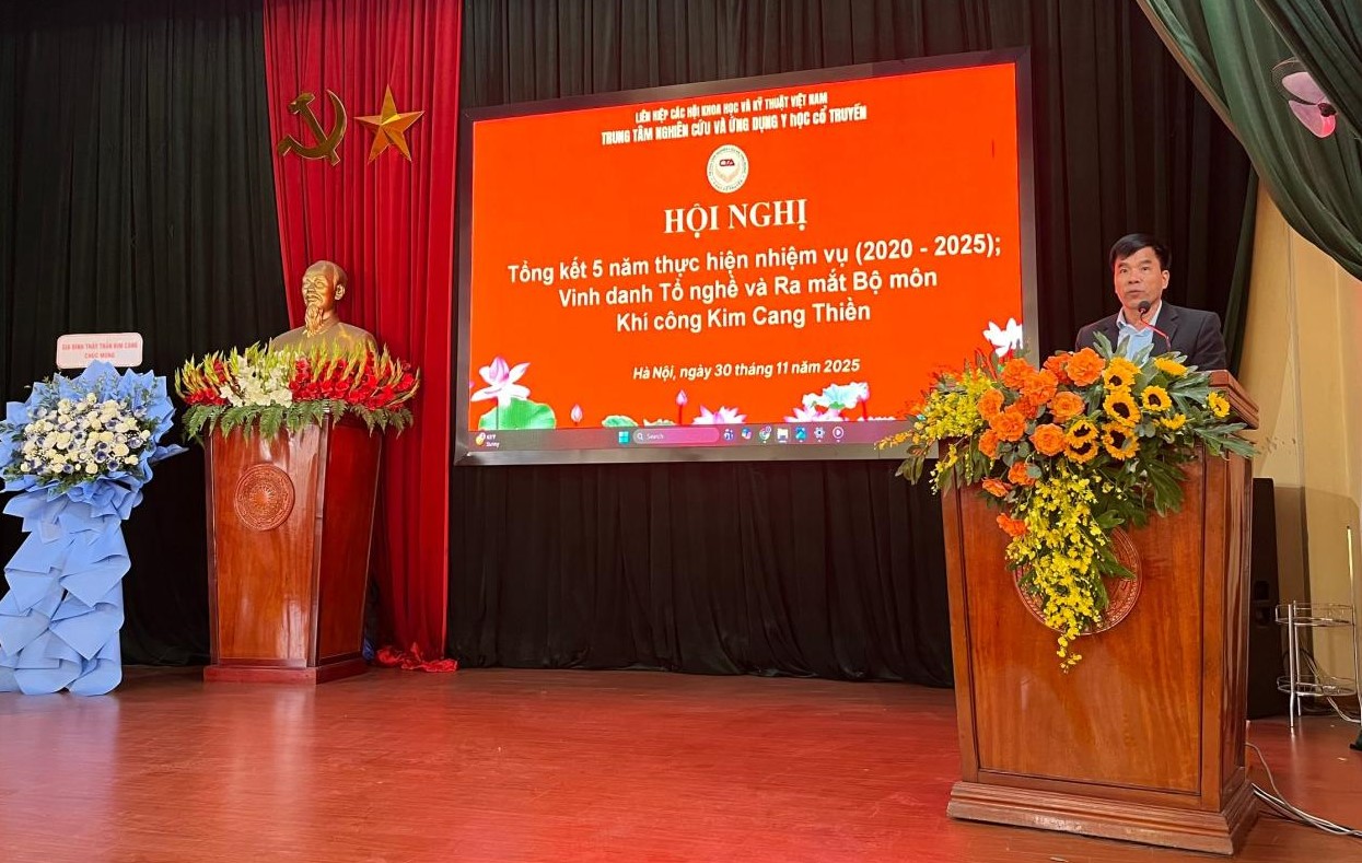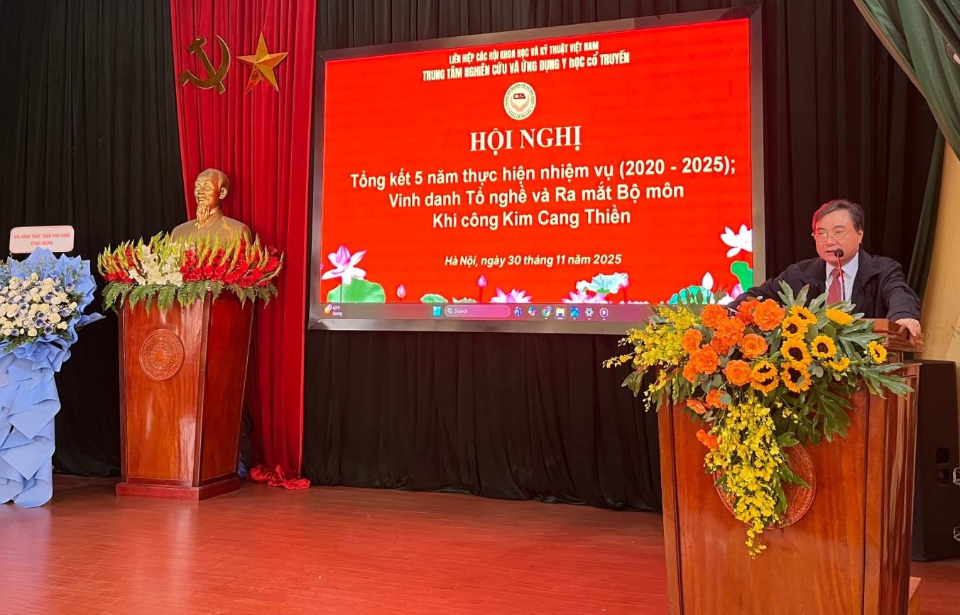 Phó chủ tịch Liên hiệp các Hội Khoa học và Kỹ thuật Việt Nam Phạm Quang Thao phát biểu chúc mừng, và ghi nhận những kết quả đạt được trong chặng đường 5 năm xây dựng và phát triển của Trung tâm Nghiên cứu và Ứng dụng Y học cổ truyền