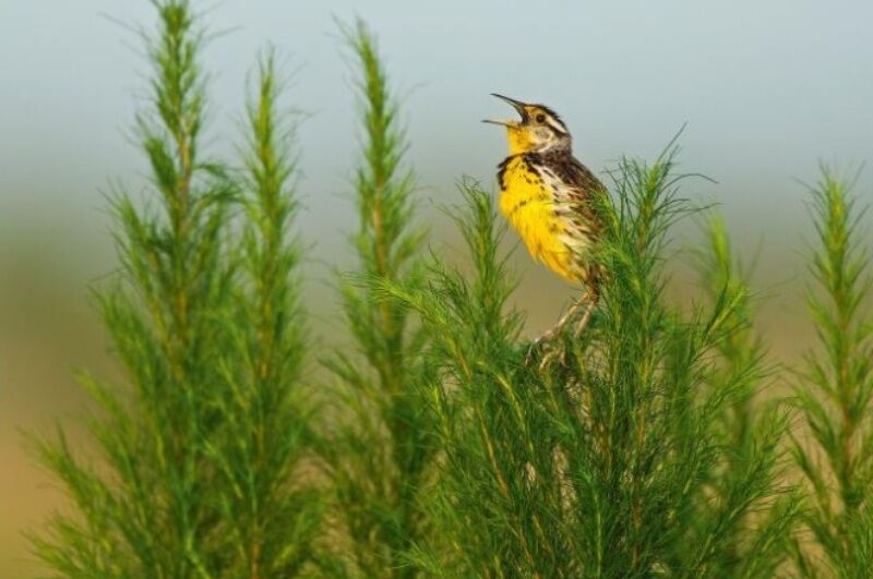 Một chú chim đồng cỏ đậu trên cây thì là chó ở Florida, Mỹ. Loài chim này đã giảm đặc biệt nhanh do tiếp xúc với thuốc trừ sâu và mất môi trường sống.