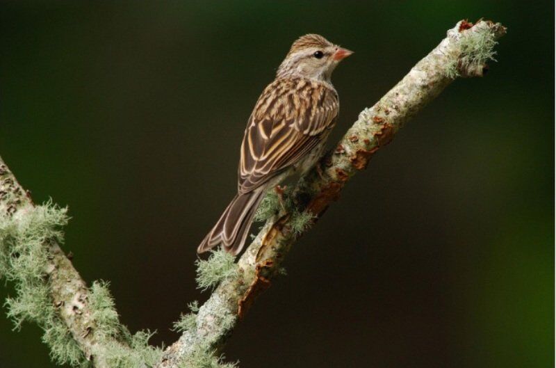 Một chú chim sẻ đậu trên một nhánh địa y ở Cape Cod, Massachusetts. Số lượng của loài này cũng đang giảm.