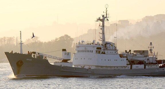 Tàu Liman thuộc Hạm đội Biển Đen của Nga vượt eo biển Bosporus. Ảnh: Sputnik.