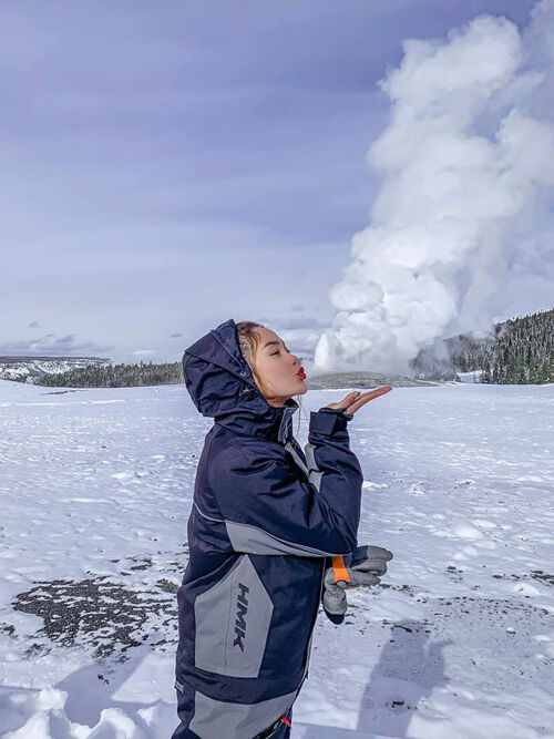 Điểm đến sau đó của hành trình là núi lửa Yellowstone. Vào mùa đông, núi lửa phun lên ngọn nước cao khoảng 30-40 m, khiến nữ ca sĩ rất thích thú. "Trời ơi, tin được không. Mọi thứ nơi đây như bước ra từ truyện cổ tích, chỉ tiếc rằng mình không phải là công chúa Elsa để hát vang bài Let It Go. Choáng ngợp thật sự, choáng vì sự hùng vĩ của thiên nhiên và cũng choáng bởi vì nó quá đẹp. Không tưởng tượng nổi Hằng có thể mạnh mẽ một cách phi thường để đứng dưới âm 17 độ C suốt 5 tiếng. Cứ nghĩ đến cái giò thủ heo đông lạnh ngày Tết", cô hài hước chia sẻ