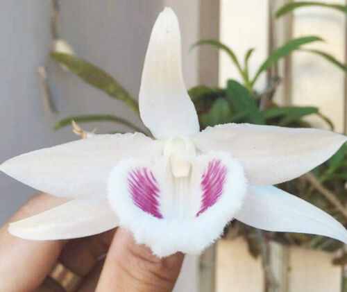 Anh Võ Văn Tuyên (thị xã La Gi, Bình Thuận) - "cha đẻ" cây lan nói trên cho biết anh chăm sóc hơn 30 tháng cây mới ra hoa. Điều đặc biệt là năm cánh hoa đều có màu trắng, bóng mượt. Chăm sóc loại lan đột biến này đòi hỏi phải kỳ công, kỹ lưỡng cũng như chấp nhận rủi ro. Một bông hoa đột biến đẹp cần phải đạt các yếu tố như: càng bầu, căng, bóng. "Mắt" xước, gọn, sạch, cách xa thùy và không lem. "Mũi" có màu càng trắng càng quý.