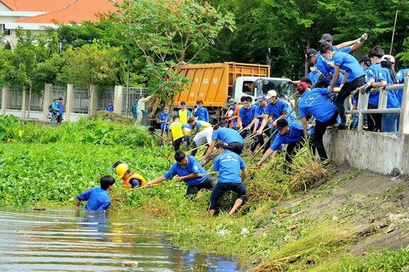 Đoàn viên, thanh niên TP Hồ Chí Minh tham gia dọn vệ sinh kênh rạch. Ảnh: Quốc Thanh