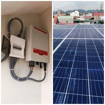 Thứ nhất là tấm pin năng lượng mặt trời: Là thiết bị quan trọng nhất được ghép nhiều tấm pin mặt trời lại với nhau gắn trên mái nhà để thu nhiệt độ, ánh sáng từ mặt trời chuyển thành điện năng.
