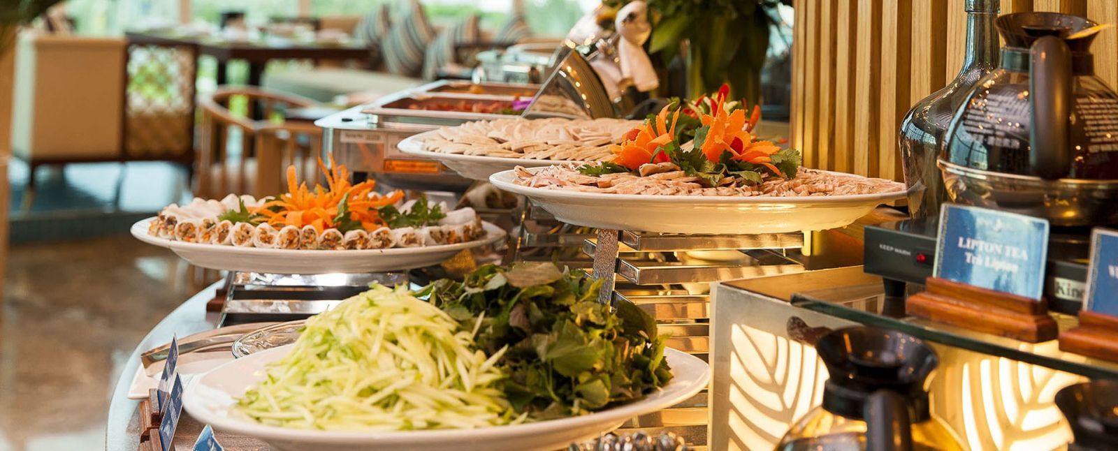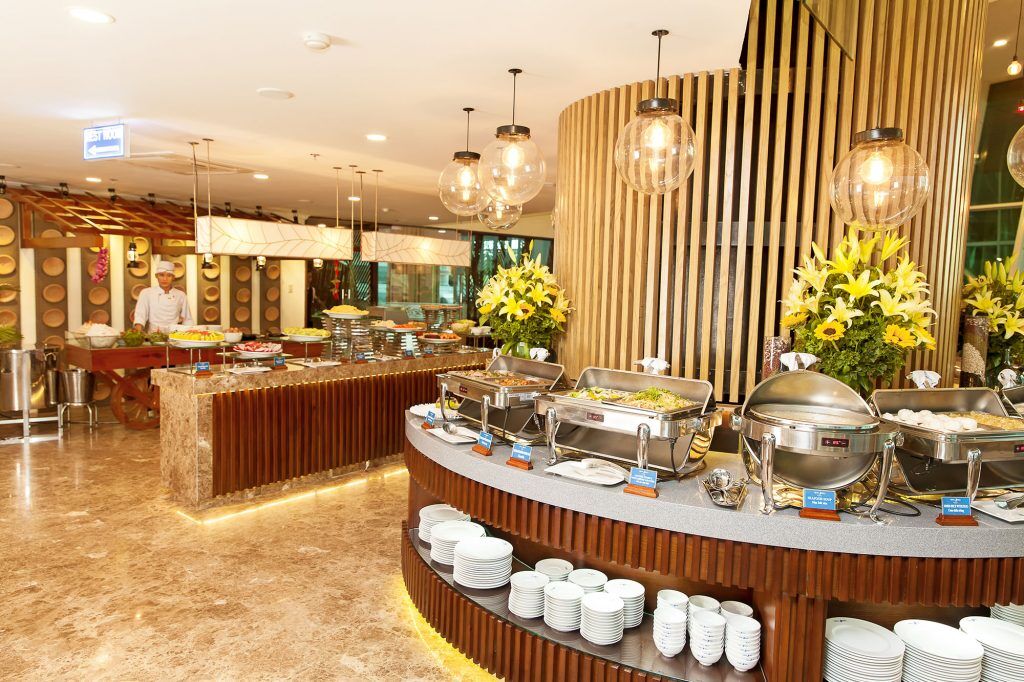 Không gian ăn sáng ấm cúng và sang trọng với Buffet nhiều món cho khách hàng tự chọn.