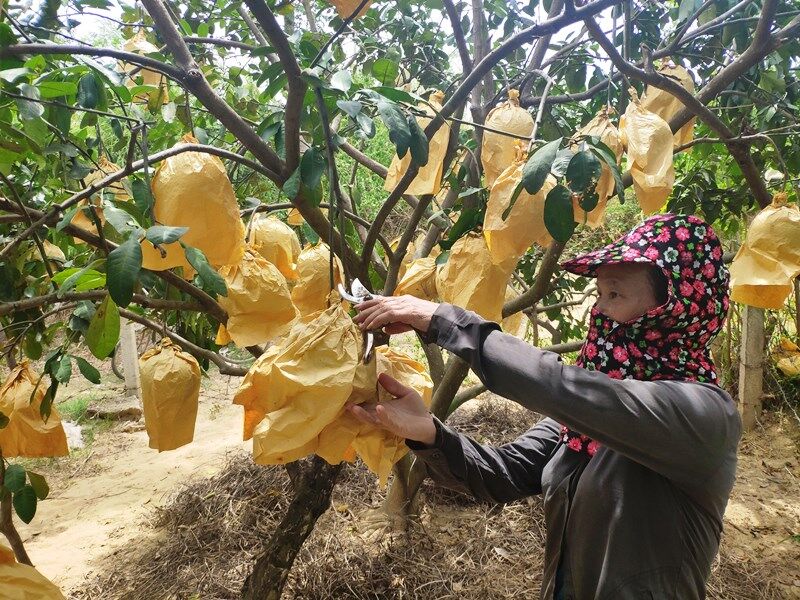 Thoăn thoắt tháo túi bọc để kiểm tra chất lượng quả bưởi, chị Hà cho biết, nhờ tuân thủ nghiêm ngặt quy trình sản xuất VietGAP, cho nên bưởi năm nay ra quả đồng đều và chất lượng tốt hơn năm trước. Thời điểm này năm ngoái, các thương lái đã dồn về đây khảo sát, đặt hàng thu mua cả vườn, thế nhưng năm nay, lượng người đến mua thưa dần, khiến các hộ trồng bưởi không khỏi lo lắng.