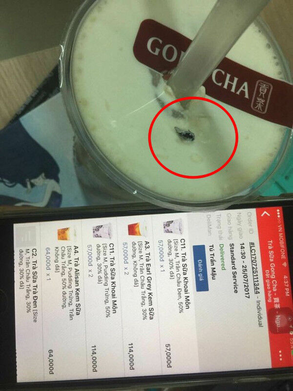Một cửa hàng Trà sữa Gong Cha tại Đà Nẵng cũng đã bị khách hàng "tố" có ruồi trong sản phẩm