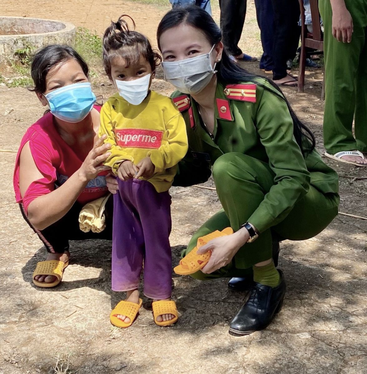 Phối hợp với công an địa phương tổ chức phát dép tổ ong cho trẻ em vùng sâu, vùng xa.