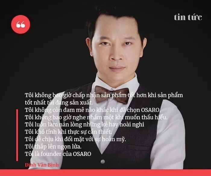 Gương mặt cương nghị và nụ cười luôn nở trên môi, anh Đinh Văn Binh đem lại cảm giác dễ chịu và thoải mái cho người đối diện, như cách mà những sản phẩm từ thương hiệu OSARO do anh sáng lập đem đến cho người dùng ngay từ những trải nghiệm đầu tiên.