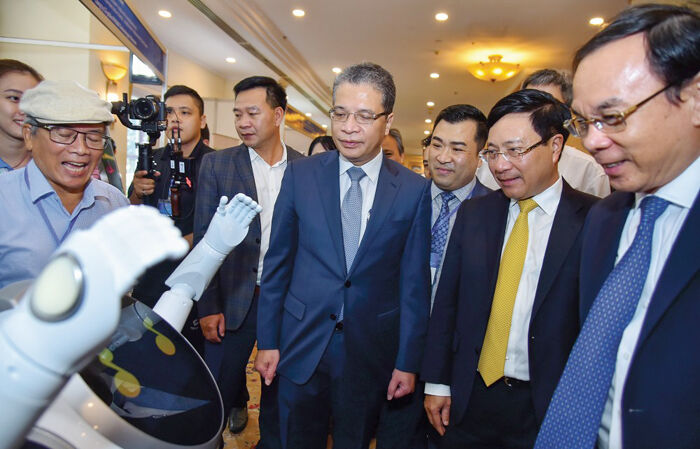 Phó Thủ tướng, Bộ trưởng Ngoại giao Phạm Bình Minh và Thứ trưởng Ngoại giao Đặng Minh Khôi thăm gian hàng công nghệ của doanh nghiệp kiều bào trưng bày bên lề Hội nghị “Kiều bào đóng góp ý kiến về chuyển đổi số và khắc phục tác động của đại dịch Covid-19 để phát triển kinh tế Việt Nam”, tháng 10/2020 tại TP. Hồ Chí Minh. (Ảnh: Tuấn Anh)