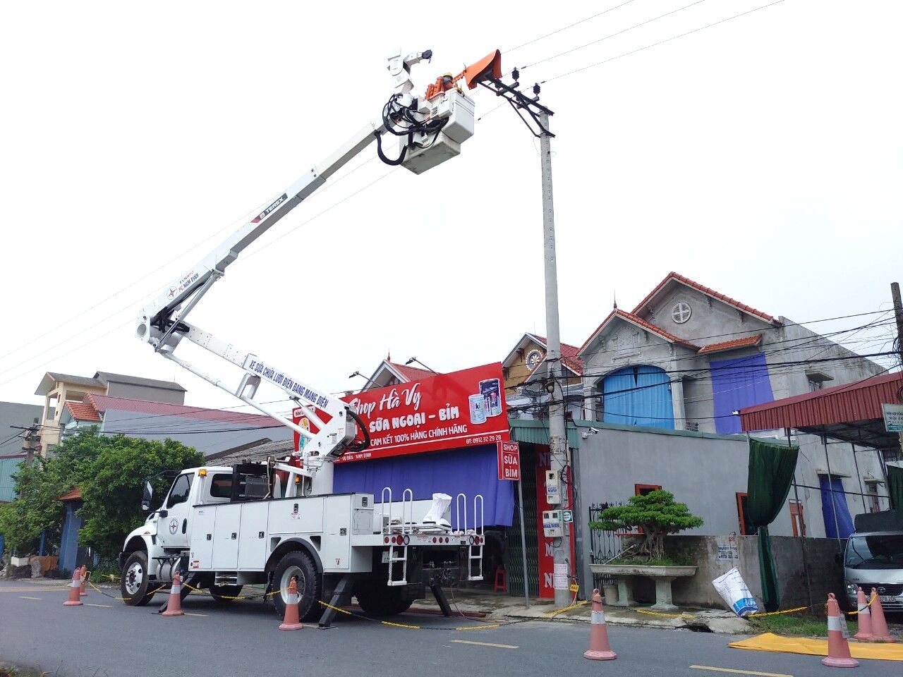 Tổ sửa chữa điện nóng hotline – Đội QLVHLĐCT làm việc tại hiện trường