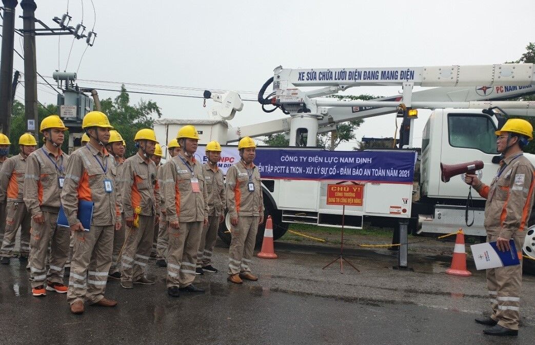 Với mục đích Ban chỉ huy PCTT&TKCN Công ty, Tiểu ban chỉ huy PCTT&TKCN, sự cố, an toàn, Đội xung kích và cán bộ công nhân viên (CBCNV) các đơn vị chủ động trong việc xử lý, ứng phó với các tình huống, chủ động đối phó, ứng cứu giải quyết kịp thời khi có sự cố do thiên tai mưa bão, lũ lụt xảy ra trên địa bàn quản lý, hạn chế tới mức thấp nhất thiệt hại về người và tài sản. PC Nam Định đã tổ chức buổi diễn tập PCTT&TKCN tại Trung tâm điều khiển xa và hiện trường khu vực xưởng Cầu Giành, nơi hạ tầng có đầy đủ như lưới điện trung hạ thế và mặt bằng thuận lợi để thực hiện các tình huống cắt điện, sửa chữa, phục hồi tái lập điện sau sự cố.