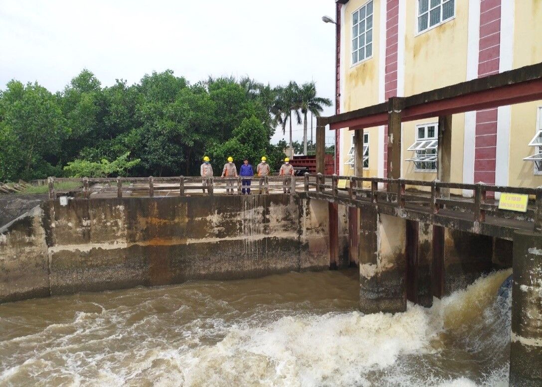 Kiểm tra Trạm bơm Vĩnh Trị đang vận hành bơm chống úng cho khu vực