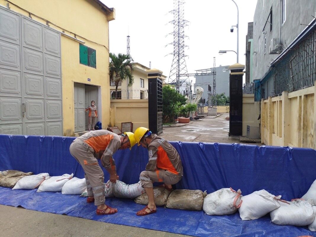 Công nhân Đội QLVHLĐCT chủ động phòng chống, ứng phó với tình huống ngập úng tại trạm 110kV Mỹ Xá, TP Nam Định