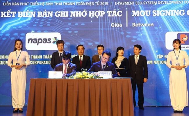 VNHN - Ngày 10/12, tại Hà Nội, Tập đoàn Xăng dầu Việt Nam (Petrolimex) và Công ty cổ phần Thanh toán Quốc gia Việt Nam (Napas) đã ký biên bản ghi nhớ hợp tác thúc đẩy thanh toán không dùng tiền mặt trong khuôn khổ Diễn đàn Phát triển hệ sinh thái thanh toán điện tử 2019 với chủ đề “Chuyển động cùng công nghệ CHIP” (EPF 2019).