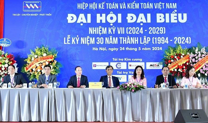 PGS.TS. Đặng Văn Thanh và các thành viên Đoàn Chủ tịch điều hành Đại hội Đại biểu nhiệm kỳ VII (2024 - 2029) Hiệp hội Kế toán và Kiểm toán Việt Nam và Lễ kỷ niệm 30 năm thành lập (1994 -2024).