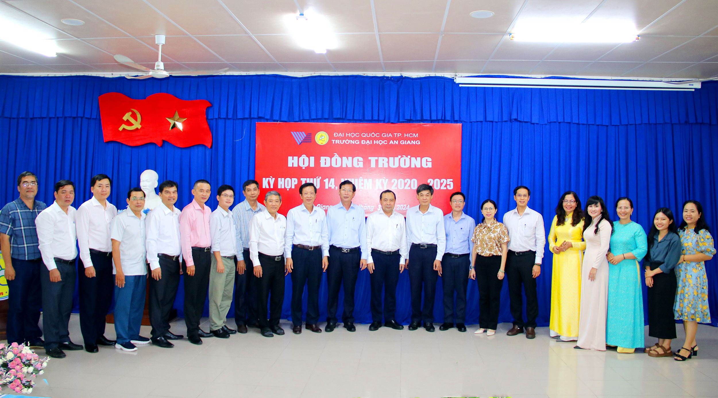 PGS.TS. Nguyễn Trung Thành (thứ 7 từ trái qua) tại Kỳ họp thứ 14 Hội đồng trường Trường Đại học An Giang, Đại học Quốc gia Tp. Hồ Chí Minh.