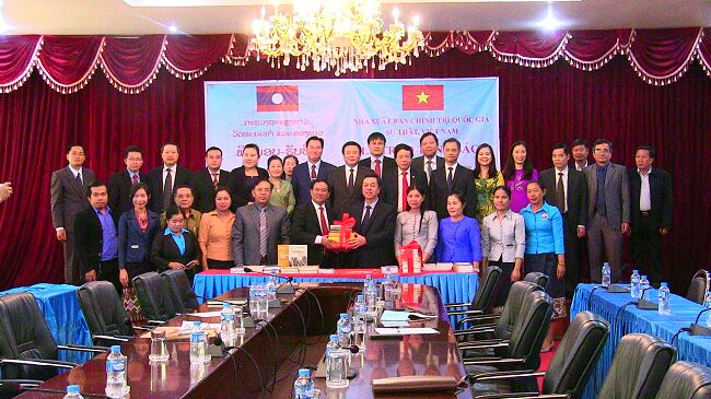 PGS.TS. Vũ Trọng Lâm trao tặng sách lý luận, chính trị dịch sang tiếng Lào cho Bộ Thông tin, Văn hóa và Du lịch Lào