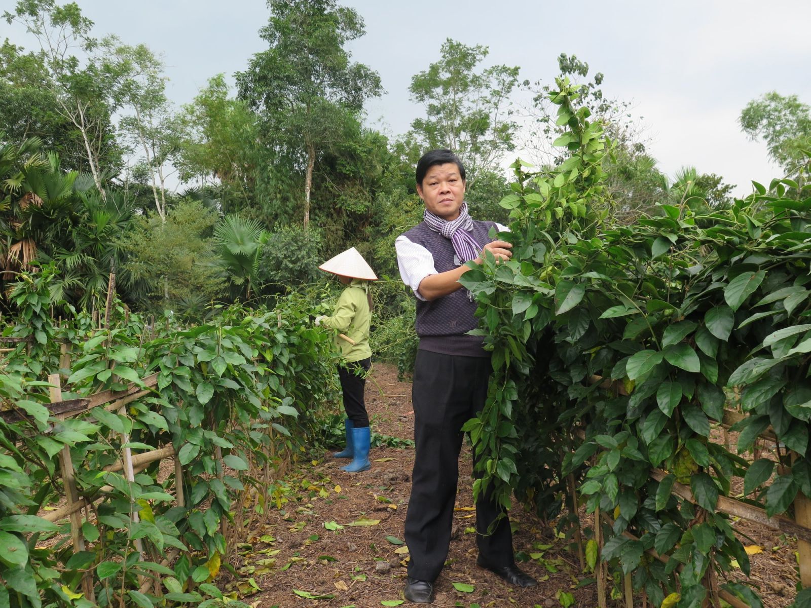 PGS.TS Trần Văn Ơn bên vườn cây Dây thìa canh lá to
