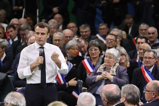 Tổng thống Pháp Emmanuel Macron trong cuộc gặp hơn 600 Thị trưởng vùng Normandie tại thành phố Grand Bourgtheroulde, tỉnh Eure ngày 15/1/2019