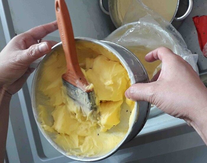 Khay chứa bơ làm bánh đầy côn trùng bên trong