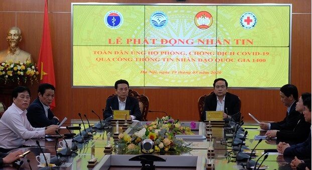 Chiều 19/3, tại Hà Nội, Bộ Thông tin và Truyền thông cùng Ủy ban Trung ương Mặt trận Tổ quốc Việt Nam đã tổ chức lễ phát động việc nhắn tin ủng hộ phòng, chống dịch bệnh COVID-19. Chương trình vận động “Toàn dân ủng hộ phòng, chống dịch bệnh COVID-19” sẽ được thực hiện thông qua Cổng thông tin Nhân đạo Quốc gia (1400). Đây là hoạt động nhằm hỗ trợ đồng bào cả nước, góp phần hạn chế những nguy cơ ảnh hưởng trực tiếp của dịch bệnh COVID-19 đến tính mạng, sức khoẻ, đời sống của người dân, thiệt hại kinh tế cũng như trật tự, an toàn xã hội.