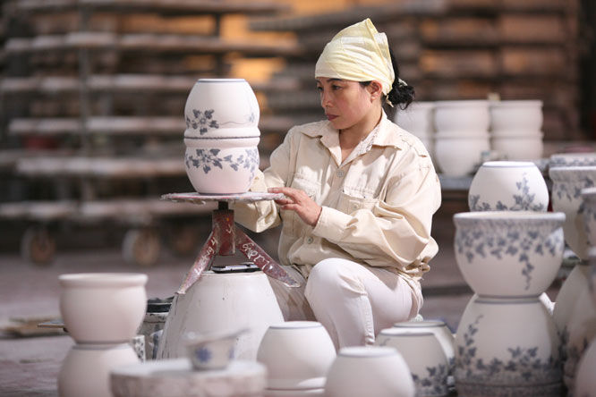 Còn tại làng gốm Bát Tràng (huyện Gia Lâm), mỗi doanh nghiệp, cơ sở sản xuất đang khẳng định thương hiệu của mình thông qua các dòng sản phẩm với mẫu mã chuyên biệt, chất lượng cao. Công ty TNHH Gốm sứ Quang Vinh có các sản phẩm nổi bật như: Bộ bát đĩa gốm sứ hoa sen đỏ, bộ ấm chén gốm sứ chim én hoa sen, bộ bát đĩa gốm sứ rồng phượng. Lò gốm của nghệ nhân Phạm Đạt định danh bằng thương hiệu “Gia tộc Việt” với các sản phẩm chủ đạo là đồ thờ làm bằng men rạn cổ hay các hoa văn đắp nổi thếp vàng. Còn Nghệ nhân nhân dân Trần Độ lại khẳng định mình qua việc sở hữu công thức pha chế các bài men quý hiếm, tạo nên các sản phẩm độc đáo từ dòng men ngọc, men nâu trầm, men chảy...