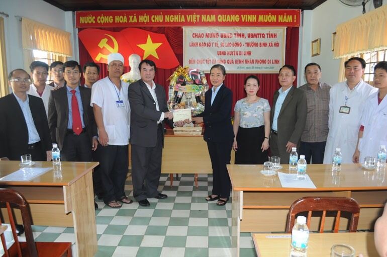 Đoàn công tác tặng quà cho Khu Điều trị phong Di Linh (ảnh Baolamdong)