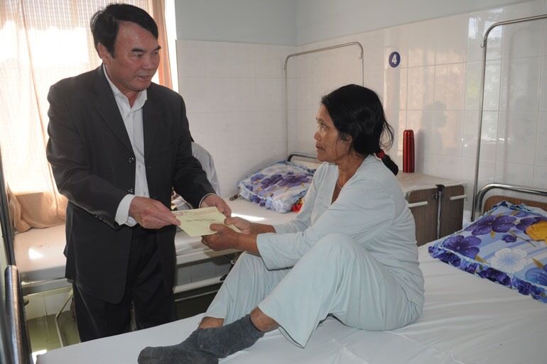 Ông Phạm S thăm hỏi và tặng quà cho bệnh nhân tại Khu Điều trị phong Di Linh (ảnh Baolamdong)