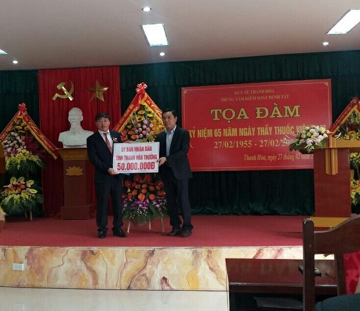 Nhân dịp này, UBND tỉnh Thanh Hóa đã thưởng nóng 50 triệu đồng cho Trung tâm Kiểm soát bệnh tật tỉnh Thanh Hóa đã có thành tích xuất sắc trong đợt cao điểm phòng, chống dịch Covid- 19 vừa qua.