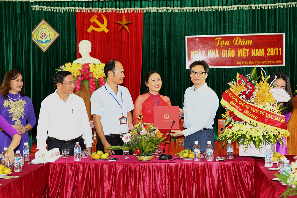 Tới thăm Trường Mầm non thị trấn Đức Thọ, Phó Thủ tướng Vũ Đức Đam gửi lời chúc mừng tập thể giáo viên của nhà trường cũng như các thầy cô giáo trên cả nước nhân Ngày Nhà giáo Việt Nam.