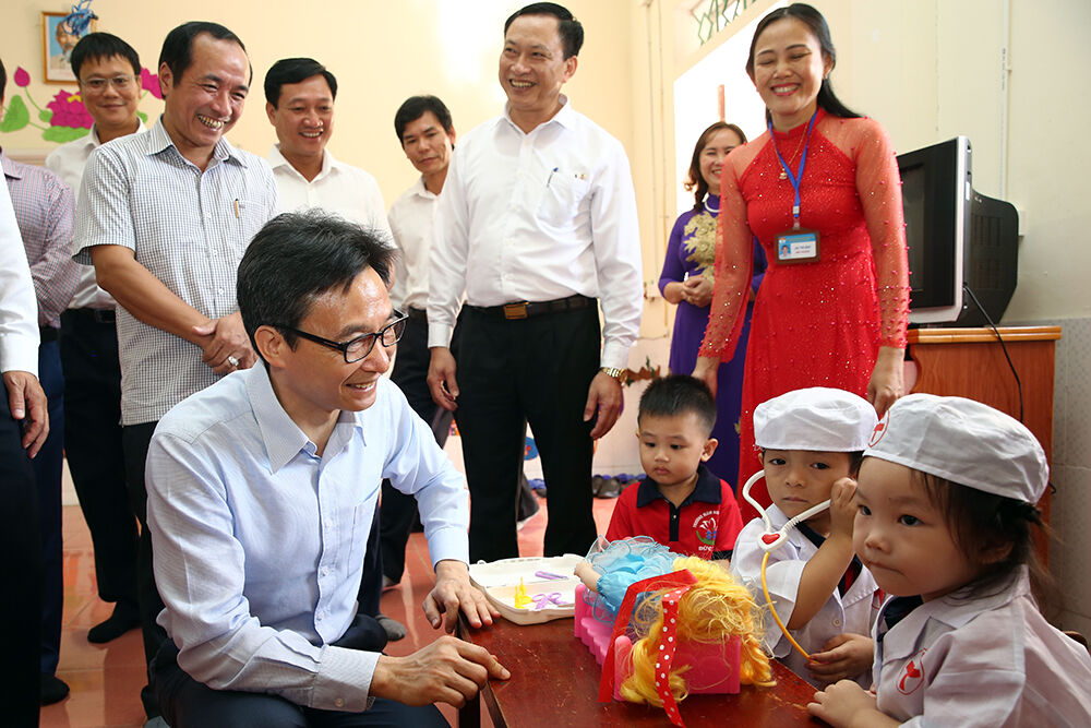 Trao đổi với lãnh đạo huyện Đức Thọ, tỉnh Hà Tĩnh, Phó Thủ tướng Vũ Đức Đam đề nghị chính quyền địa phương quan tâm, tạo điều kiện đển các trường học mầm non, phổ thông trên địa bàn hoạt động được thuận lợi, đáp ứng ngày càng tốt nhu cầu học tập của trẻ em trên địa bàn.